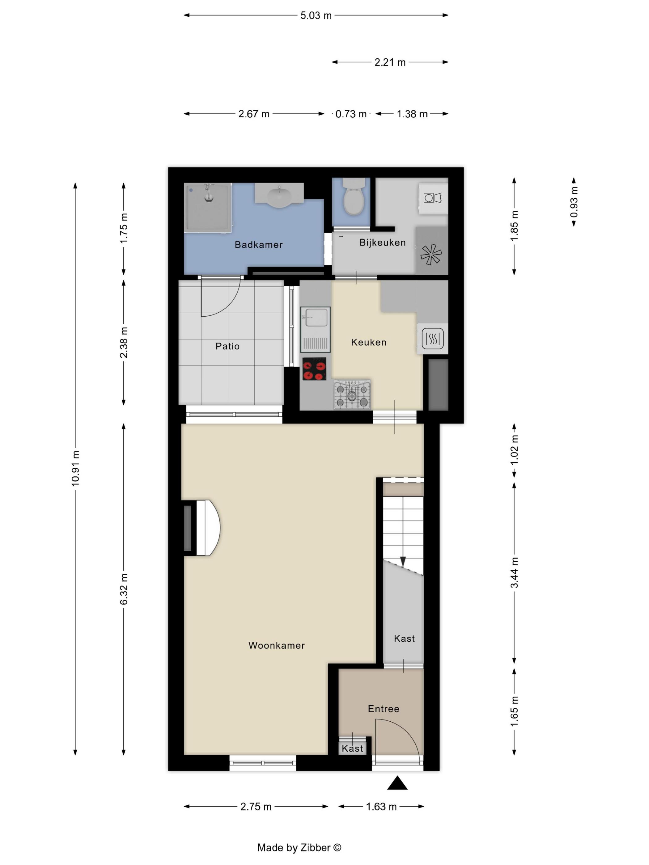 De woning beschikt over een inkomhal met bergkast, een gezellige leefruimte, aparte keuken, badkamer en een kleine buitenkoer die voor extra lichtinval zorgt. Op de eerste verdieping bevinden zich twee slaapkamers en extra bergruimte. De zolderverdieping biedt uitbreidingsmogelijkheden voor een derde slaapkamer of multifunctionele ruimte. Dit huis laat veel ruimte voor persoonlijke inrichting en eigen stijl.