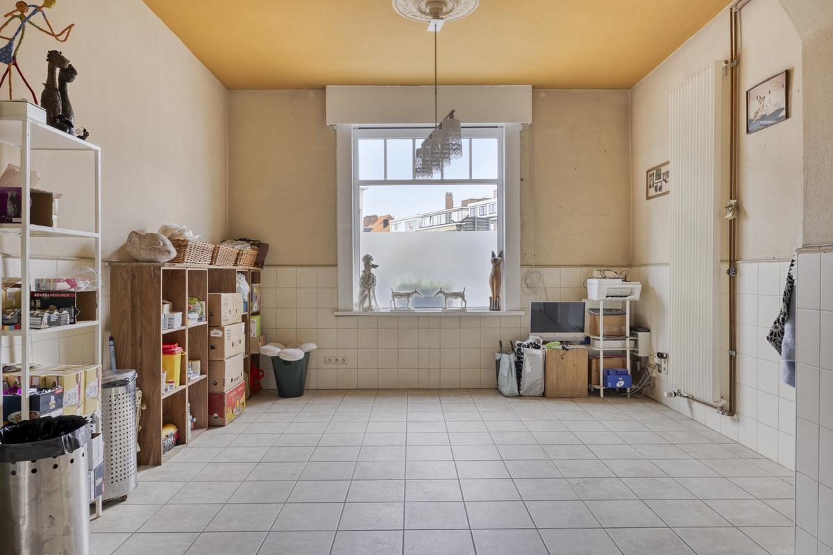 Dit karaktervolle interbellumhuis uit 1929 kan dienen als handelshuis of kangoeroewoning. Met een bewoonbare oppervlakte van 274 m² verdeeld over vier volwaardige verdiepingen en twee tussenverdiepingen biedt deze woning bijzonder veel ruimte en mogelijkheden. Op het gelijkvloers, de eerste en tweede verdieping telkens 80 m², aangevuld met een zolderverdieping van 34 m² die volledig is ingericht als leefruimte met slaapkamer, geniet men overal van hoge plafonds van drie meter en een prachtige lichtinval door de hoge ramen en dubbele Franse deuren.
