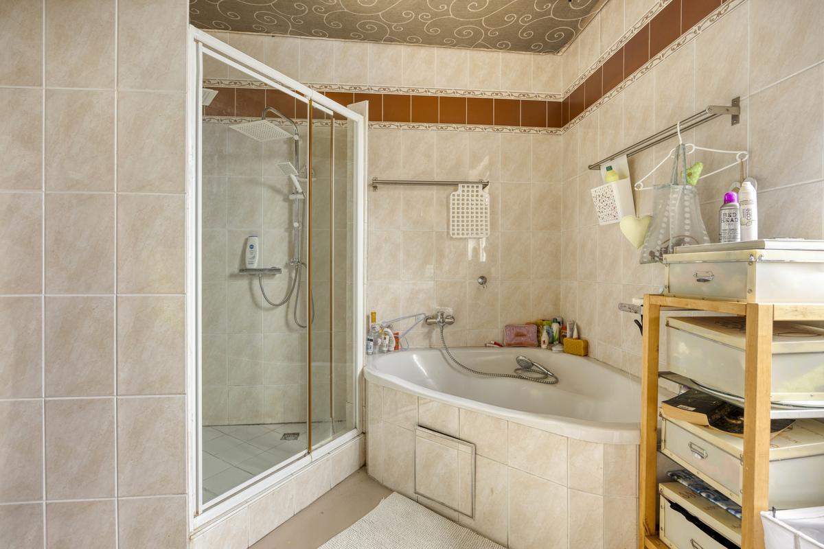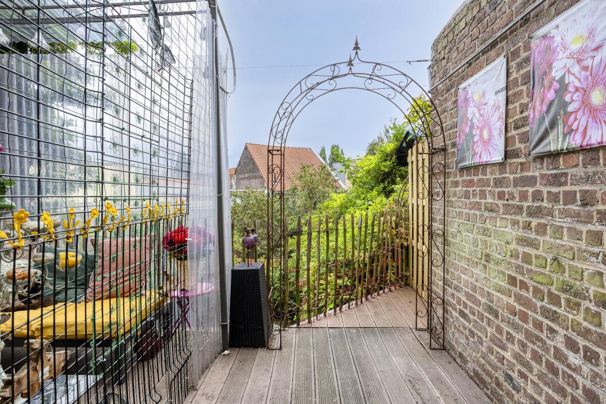 Het huis telt vier slaapkamers, een badkamer met bad en douche en twee aparte toiletten op de tussenverdiepingen. De veranda op het gelijkvloers en het terras op de eerste verdieping geven uit op een zuidgerichte tuin van bijna 40 m². Dankzij de dubbele beglazing met geluidswerend vlies ervaar je binnen verrassend veel rust, ondanks de centrale ligging aan een kruispunt.