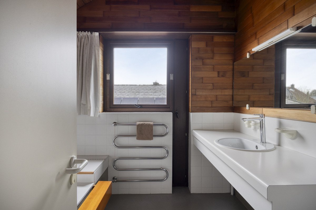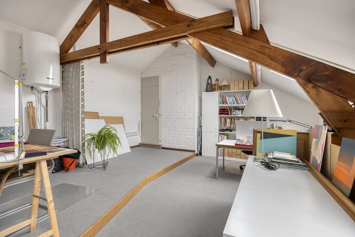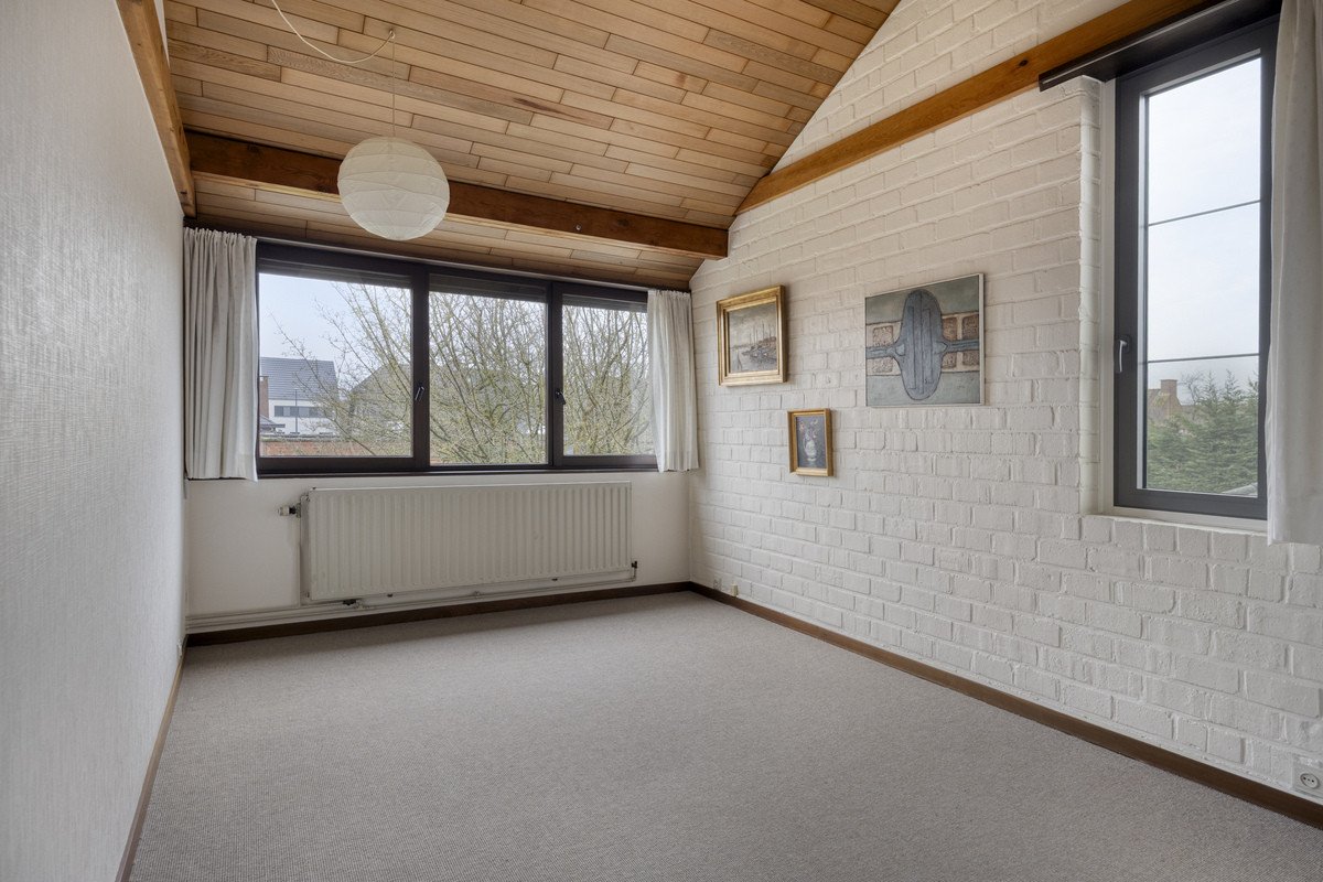 Op de verdieping bevinden zich vier volwaardige slaapkamers, aangevuld met een afgewerkte en geïsoleerde kantoorruimte aan de straatzijde, die vandaag perfect dienstdoet als bureel of praktijkruimte. De badkamers zijn functioneel en recent vernieuwd, met een moderne inloopdouche. Dankzij de vele partiële renovaties van de voorbije jaren – zoals de vernieuwde dakbedekking, aluminium ramen met zonwerend glas, Velux-dakramen met elektrische bediening, zonnepanelen en een thuisbatterij – geniet de woning van een hedendaags wooncomfort en een lagere energiekost. Het EPC bedraagt 214 kWh/m².