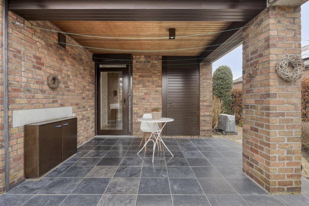 De woning beschikt bovendien over een inpandige garage, aangevuld met een overdekte carport naast het huis. De tuin is volledig georiënteerd op het zuidoosten en is voorzien van zonnetent en screens, wat het buitenleven bijzonder aangenaam maakt vanaf de eerste zonnestralen. De ligging in een rustige, residentiële straat combineert de voordelen van een groene omgeving met een vlotte bereikbaarheid naar Lier en de omliggende steden.